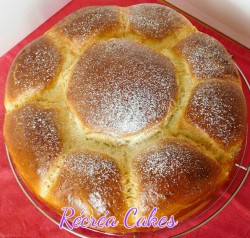 - Prélever des pâtons de pâte , j’ai fait une brioche toute simple ronde dans un moule à tarte tatin + 1 brioche Nanterre à 6 boules de 50 g .